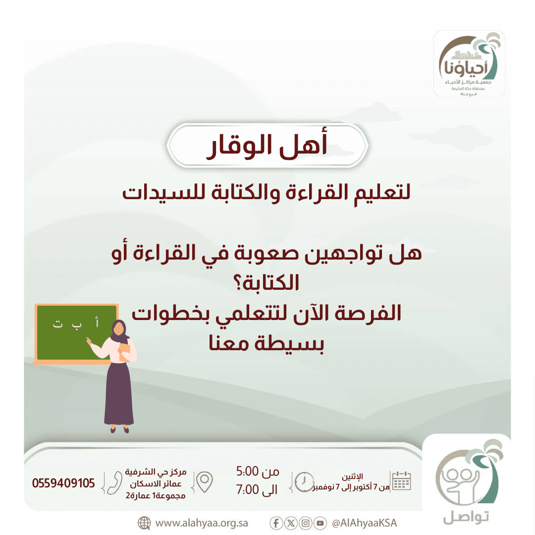 مكان الفعالية | مركز حي الشرفية النسائي |