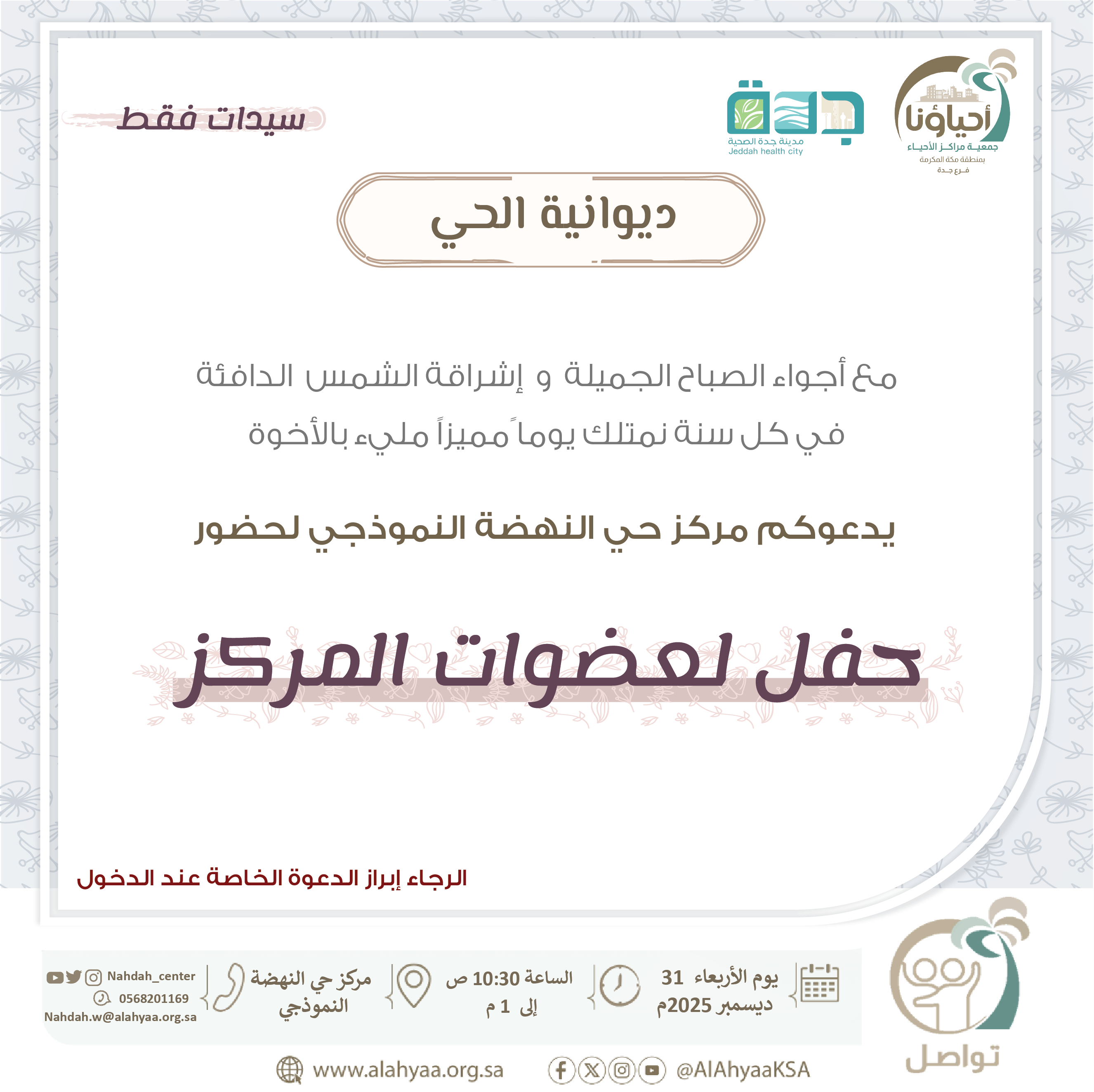| مكان الفعالية | مركز حي النهضة النموذجي |