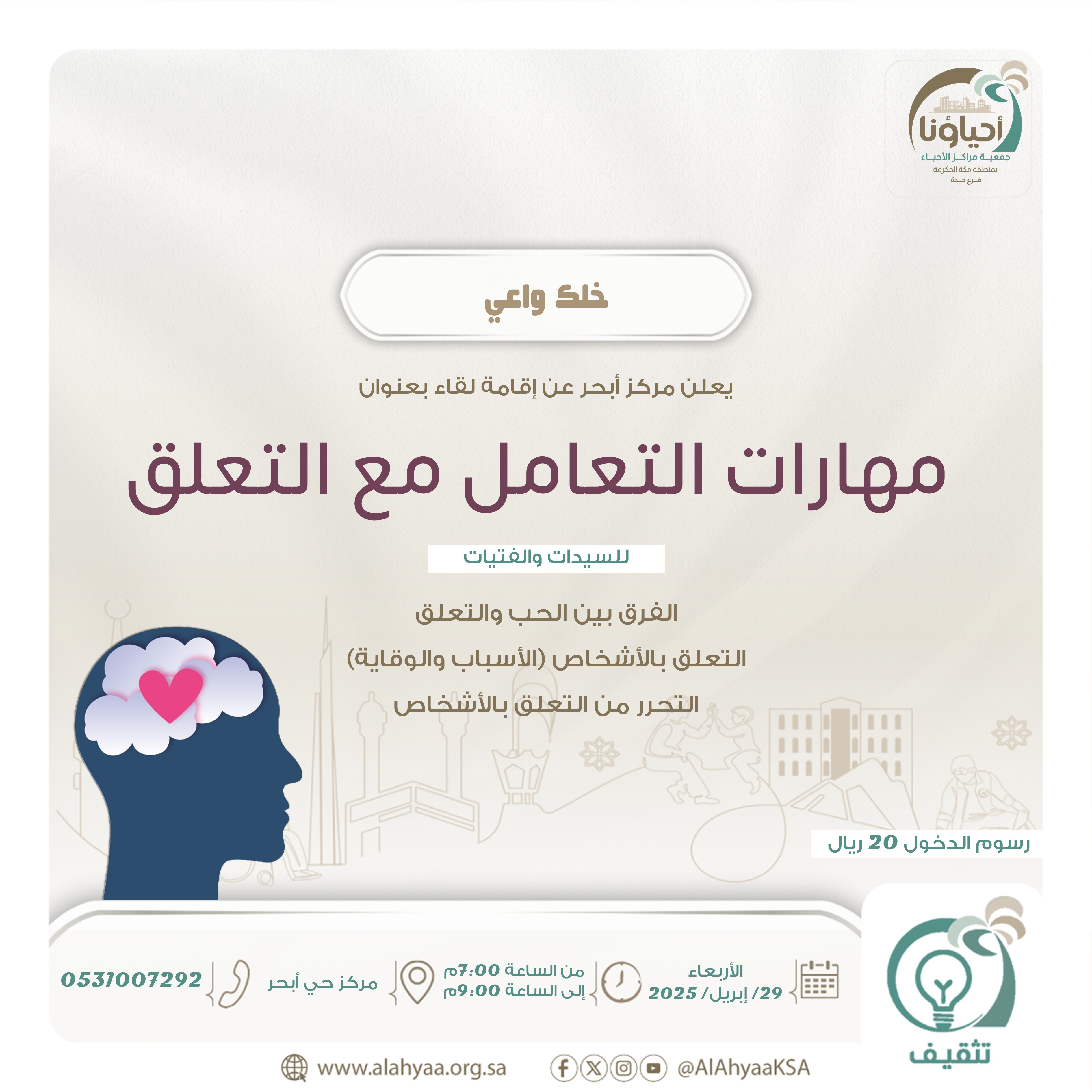 يعلن مركز حي أبحر النسائي عن إقامة لقاء بعنوان