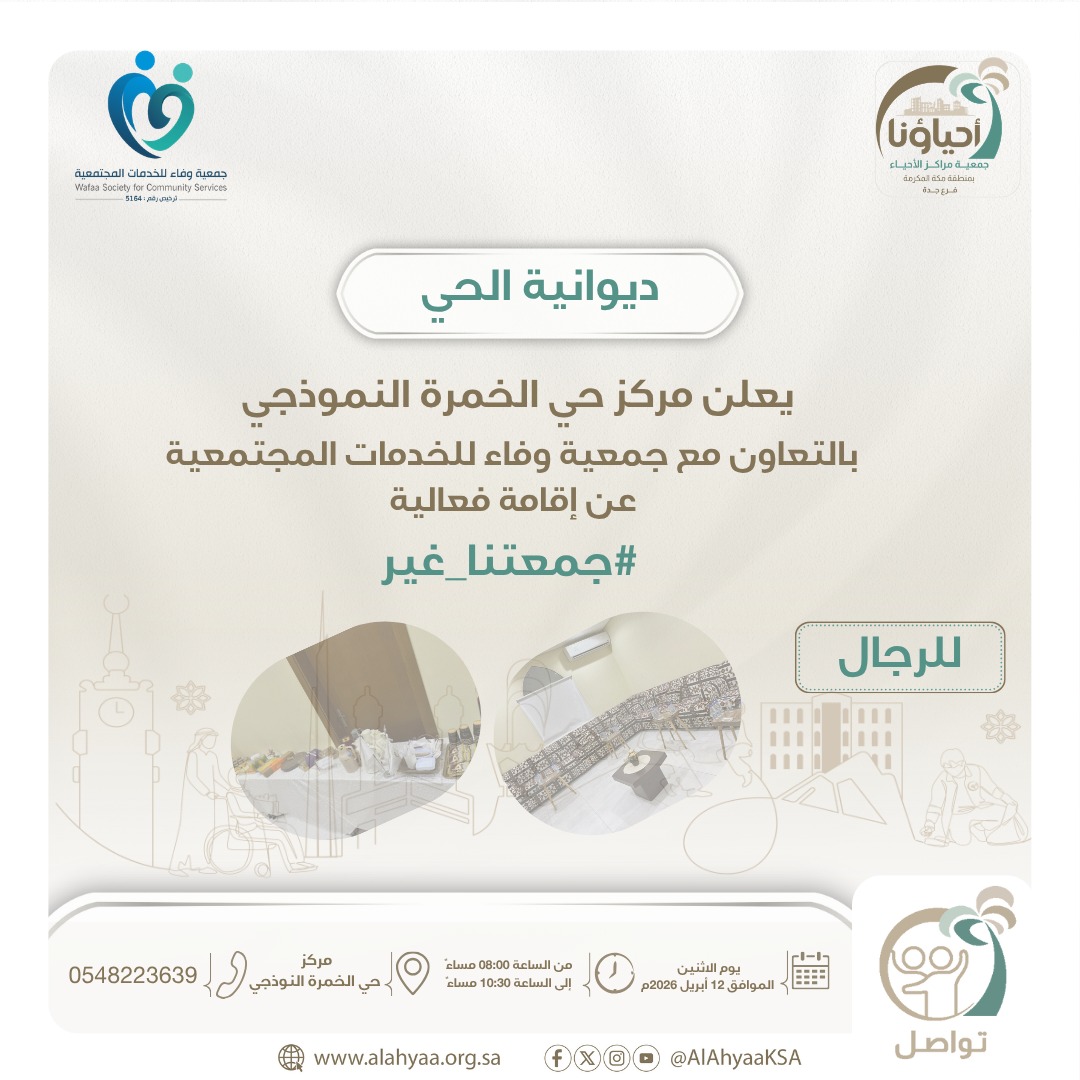 بالتعاون مع جمعية وفاء للخدمات المجتمعية عن أقامة فعالية جمعتنا غير