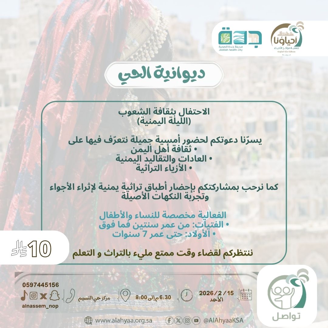 | مكان الفعالية | مركز حي النسيم |