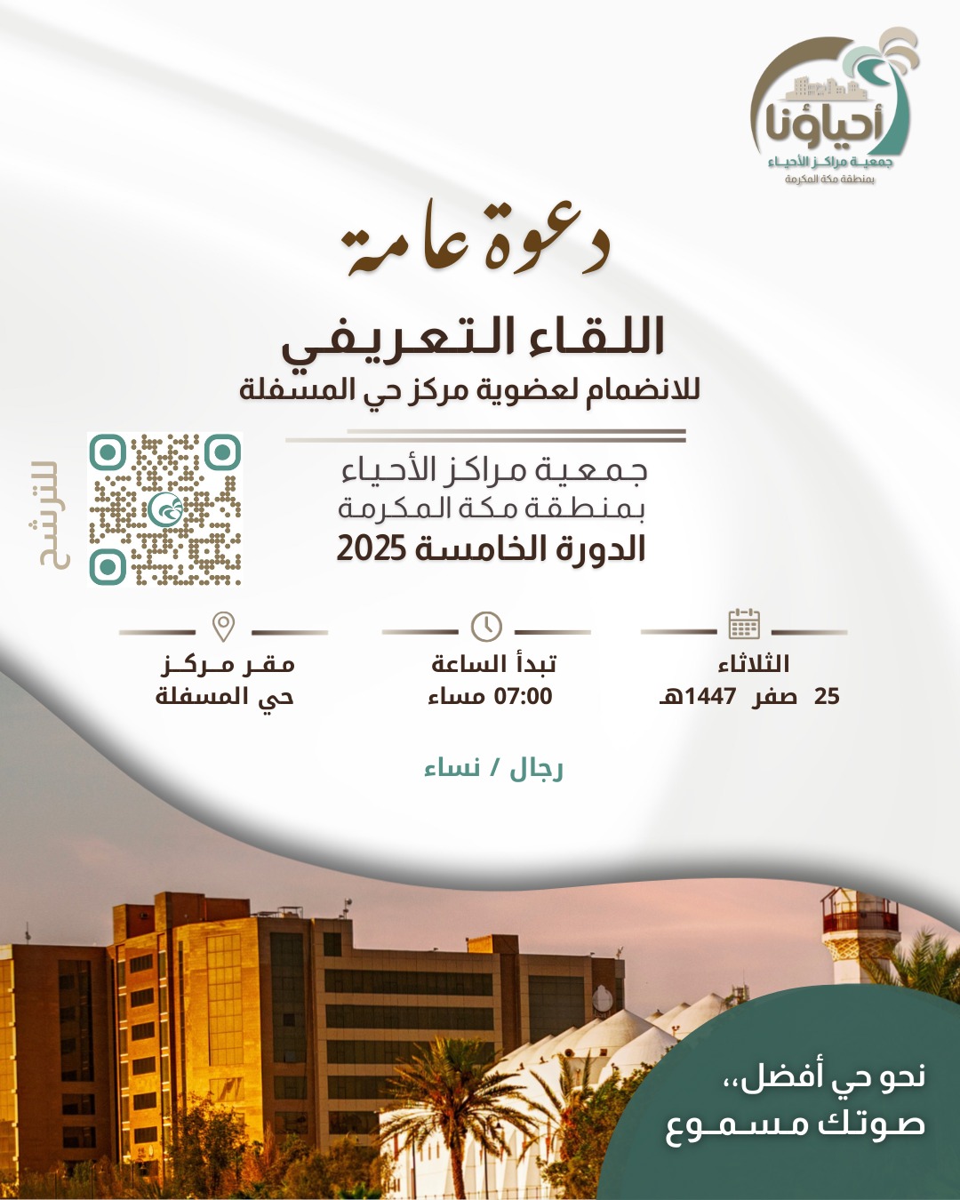 لقاء تعريفي للإنضمام لعضوية مركز حي المسلفة