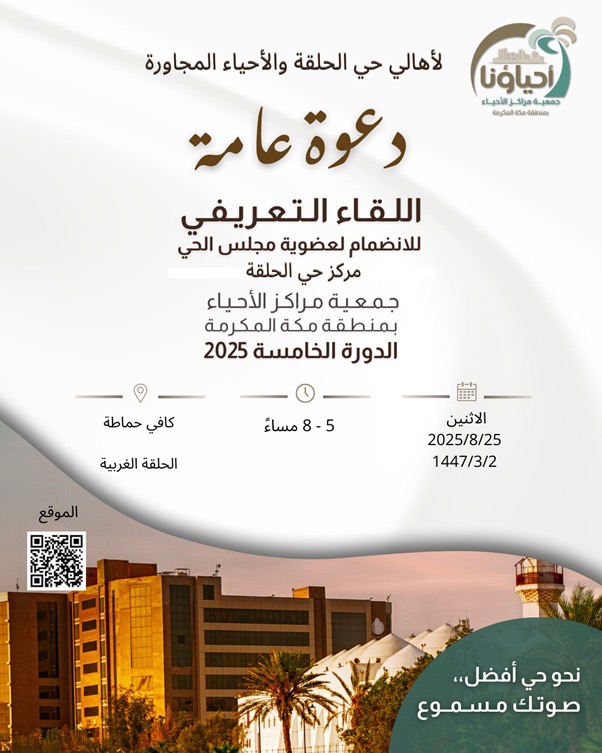 اللقاء التعريفي لدور مجلس الحي لاهالي الحي للانضمام لعضوية مجلس الحي للدورة الخامسة 1447هـ