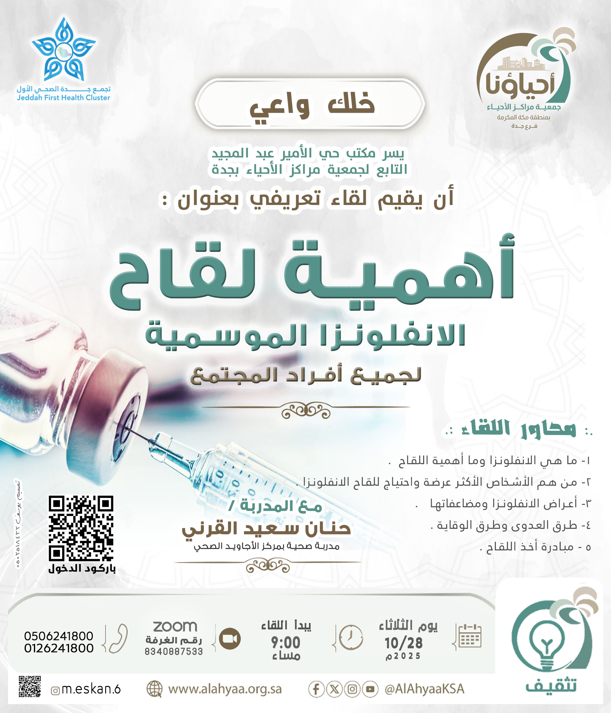 بعنوان : أهمية لقاح الانفلونزا الموسمية لجمع أفراد المجتمع .